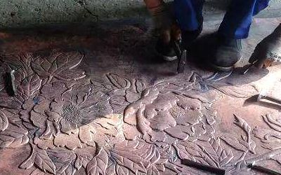 鍛造(咱們這兒特指鍛銅)——嘿!這可是體力活加技術(shù)活!拿銅板當(dāng)畫(huà)布,錘子當(dāng)畫(huà)筆,全靠師傅一錘子一錘子敲打出來(lái)的!尤其是浮雕、壁畫(huà)這類(lèi)講究深淺效果的,這手藝絕了!純手工的精細(xì)活兒。